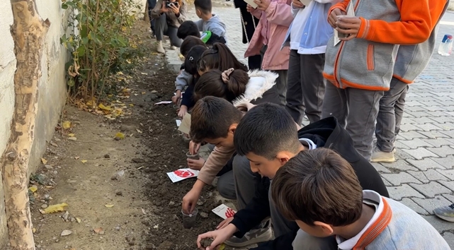 Konya'nın Çiğil Kazım Karabekir İlkokulu'nca "Ata tohumları Cumhuriyetle yeniden filizleniyor" kampanyası kapsamında kardeş okul Yüksekova Hamit Kesici İlk ve Ortaokuluna gönderilen tohumlar toprakla buluşturuldu.