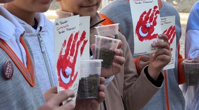Cumhuriyetin 102. yıl dönümü nedeniyle Konya Çiğil Kazım Karabekir İlkokulu 4/A sınıfı öğrencilerince hazırlanan 30 fidan tohumu ve 102 meşe palamudu, Yüksekova Hamit Kesici İlkokulu 4/B sınıfı öğrencilerine ulaştırıldı. Okula ulaşan tohumlar, okul yönetimi ve öğretmenler öncülüğünde okul bahçesinde düzenlenen etkinlikle öğrencilere tanıtıldı. Öğrenciler, bilgilendirmenin ardından kendilerine verilen toprak dolu pet bardaklara tohumları yerleştirerek can suyunu verdi.