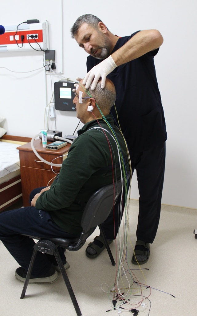 Birimde sorumlu teknik personel olarak çalışan Mesut Çakıcı ise hastaları uyku öncesi hazırlayan ekipten. Çakıcı, akşam saatlerinde laboratuvara gelerek yatış yapan hastalarla ilgilendiğini ifade ederek, “Hastalarımızı uykuya hazırladıktan sonra yataklarına yatırıp uykuya geçmelerini bekliyoruz. Bu süreci de odalarda bulunan kameralardan takip ediyoruz. Herhangi bir problemde ise direkt müdahale edebiliyoruz. Uykuları boyunca onları takip edip gelen sinyalleri kaydediyoruz. Bağlamış olduğumuz kablolar ile hastanın uykuya dalıp dalmadığını, uyku apnesinin olup olmadığını tespit ediyoruz” dedi.