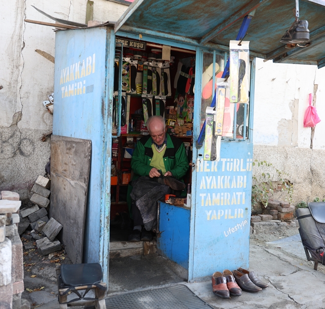 Elazığ'da 73 yaşındaki Hasan Aydın, 2 metrekarelik barakada 45 yıldır babasından devraldığı ayakkabı boyacılığı mesleğini sürdürüyor.