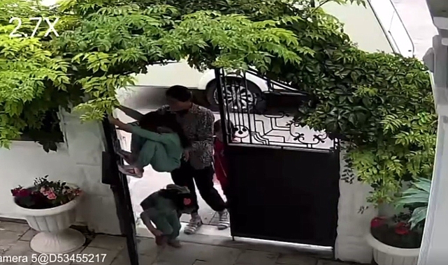 Evde kimsenin olmadığını fark eden kadın ve çocuklar bahçede bir süre gönüllerince eğlendi. Daha sonra hırsızlık için kadının eve gireceği anda alarm çaldı. Olayı fark edip güvenlik kamerasından yaşananları cep telefonundan izleyen ev sahibi kurdurduğu bağlantı sayesinde megafondan ‘polis geliyor’ diye şeklinde ses gönderince paniğe kapılan kadın yanındaki çocukları alıp hızla kaçtı. Yaşananlar evin güvenlik kamerasına an be an yansıdı.