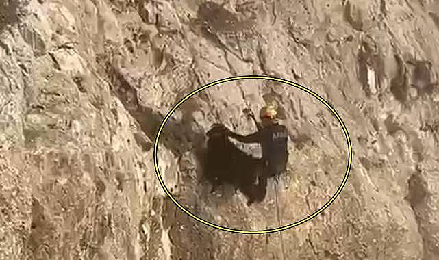 Batman’ın Hasankeyf ilçesinde AFAD ekipleri, 4 gündür sarp kayalıklarda mahsur kalan 2 keçiyi halat yardımıyla aşağı inerek kurtardı.