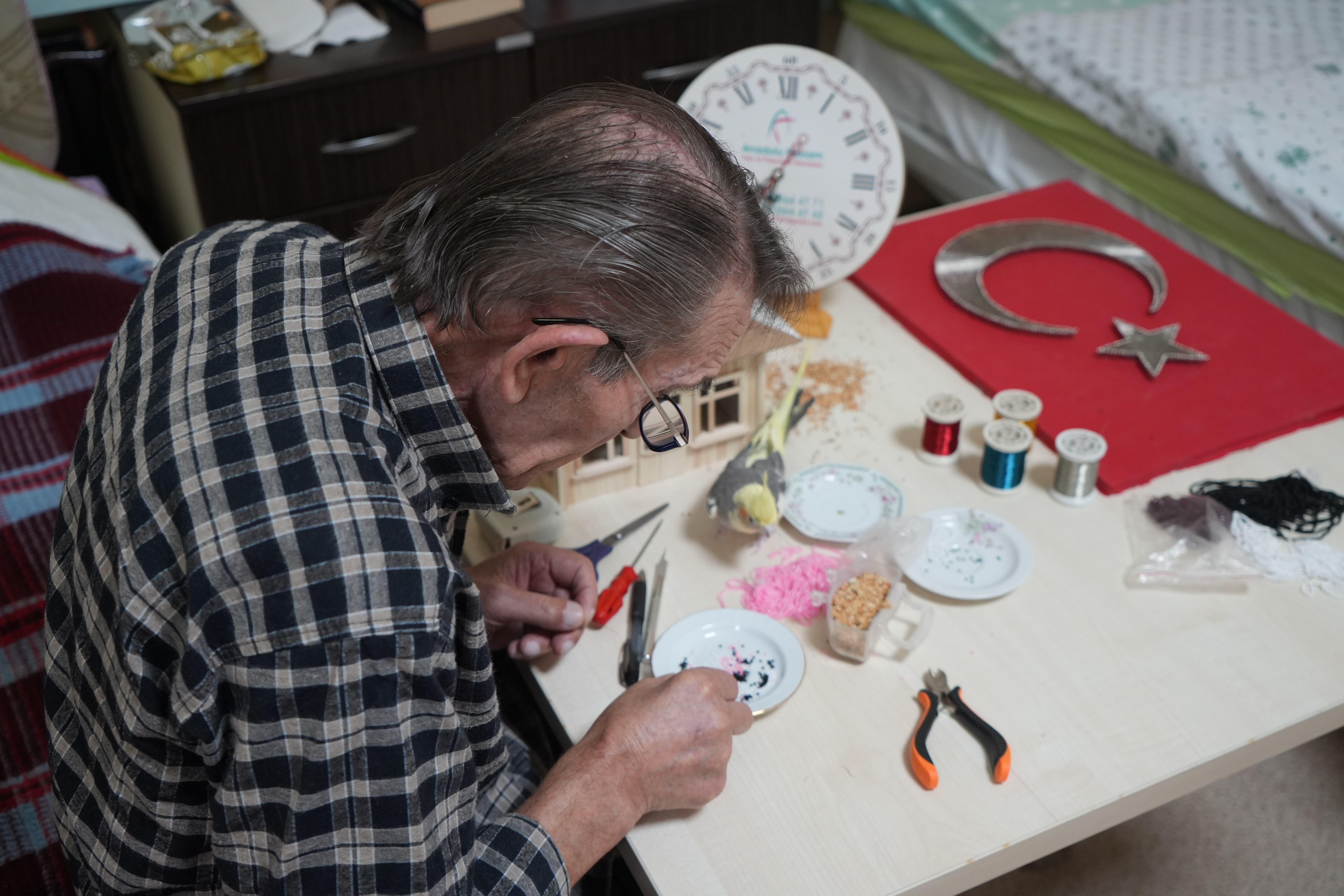 Bayburt huzurevinin tadilata girmesi üzerine Erzincan’ın Kemah ilçesindeki huzurevine geçtiklerini ifade eden Alemdar, burada açılan el işi kursuyla yeni bir uğraş edindiğini dile getirdi. Alemdar, "Huzurevine gelmeden evvel demirle uğraşıyordum, demirciydim. 56 sene demircilik yaptım. Sonra bir kaza geçirdim, merdivenden düştüm, boynum kırıldı. Sonra huzurevine geldim. Can sıkıntısından, tavan izlemekten bunaldım. Pandemi döneminde dışarı çıkış yoktu, hatta odadan çıkış bile yoktu, karantinadaydık" dedi.