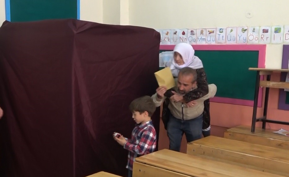Cumhurbaşkanlığı ikinci tur seçimi için oy kullanmak isteyen parkinson hastası Dilber Tunç’ur (83) isteğini oğlu Kasım Tunç yerine getirdi. Annesinin oy kullanması için 112 İl Ambulans Servisine başvuru yapmakta geciken Kasım Tunç, annesini sırtında taşıyarak oy kullanacağı sınıfa getirdi. Buradaki işlemlerinin ardından eline aldığı oy pusulası ile oğlunun sırtında kabine giden Tunç, oy kullanma görevini yerine getirdi. Oğlunun sırtında oyunu kullanan Tunç, zarfı sandığa atarak seçimin hayırlara vesile olmasını istedi.