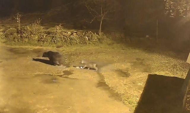 Artvin'de ilkbaharın gelmesiyle birlikte kış uykusundan uyanan ayılar, yiyecek bulmakta zorlanınca yerleşim yerlerine inmeye başladı. Farklı noktalarda görüntülenen ayılar, hem köylerde hem de kara yollarında kameralara yansıdı. Arhavi ilçesine bağlı Dik Yamaç köyü Akıncılar mevkiinde Yılmaz Kuru'ya ait evin güvenlik kamerasına yansıyan görüntülerde bir ayının köy içinde yiyecek arayıp etrafta dolaştığı, ardından bölgeden uzaklaştığı görüldü. Görüntülerde ayının peşine takılan iki tilki ise dikkat çekti.