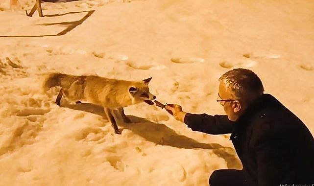 Tilkinin aç olduğunu fark eden Gen Merkezi Müdürü Sinan Aydın, tilkiyi etle besledi. Karnını doyuran tilki daha sonra bölgeden uzaklaştı.