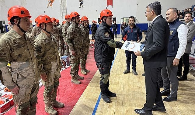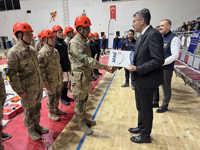 Eğitim alan personele sertifikalarının verildiği törende AFAD İl Müdürü Erhan Kanat, arama kurtarma çalışmalarında kullanılacak malzemeleri tanıttı.