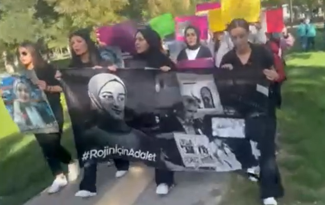Burada konuşan Zelal Kabaiş, "Adalet artık Rojin'in yanında olsun. Biz sessiz kalmayacağız, adalet istiyoruz" ifadelerini kullandı.