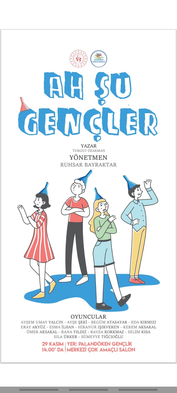 Turgut Özakman’ın yazdığı ve Ruhsar Bayraktar’ın yönetmenliğini üstlendiği “Ah Şu Gençler” oyunu, Erzurum Palandöken Gençlik Merkezi Çok Amaçlı Salon’da seyirciyle buluştu. Gençlik sorunlarını öğüt vermeden, yargılamadan ve mizahın gücünü kullanarak irdeleyen oyun dün sahnelendi.