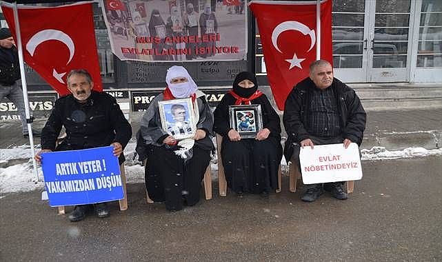 Anne Şahinaz Özcan ise "Yıllardır evlat hasreti çekiyorum. Bu karda, kışta gelip burada nöbet tutuyoruz. Çocuklarımızın teslim olmasını istiyoruz. Yıllardır süren hasretin son bulmasını bekliyoruz." ifadelerini kullandı.