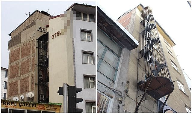Aradan geçen bir yıla rağmen Erzurum’daki bazı otel ve binalarda ortaya çıkan görüntüler, denetimlerin yeterliliğini tartışmaya açtı. Görüntülere göre, bazı otellerde yangın merdivenleri kapalı alanlara açılıyor, yangın merdiveni kapıları tahta malzemeden yapılmış ve kilitli, kimi binalarda yangın merdivenine çıkan kapılar suntalarla tamamen kapatılmış, bazı apartman ve iş merkezlerinde ise yangın merdiveni kat arasında sona eriyor, dışarıya ve güvenli alana ulaşmıyor.