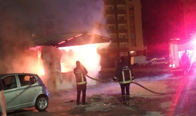 Van’ın İpekyolu ilçesinde çıkan yangında otopark kulübesi alev alev yanarken, 4 otomobil ise hasar gördü.