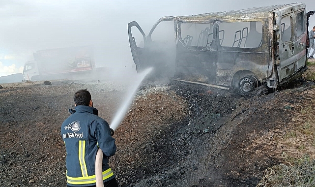 Van’ın Saray ilçesinde seyir halindeki minibüs alev alev yanarak kullanılamaz hale geldi.