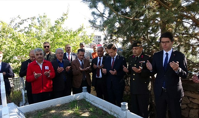 Depremde hayatını kaybedenler için dua eden Karaloğlu ve beraberindekiler, mezarlara karanfil bıraktı.