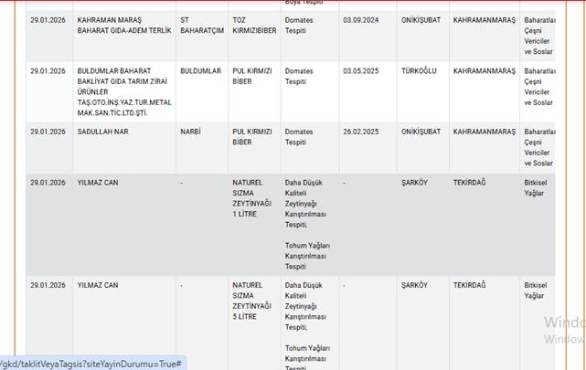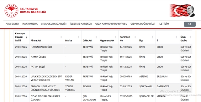 Tarım ve Orman Bakanlığı yetkilileri, vatandaşları gıda güvenliği konusunda dikkatli olmaya çağırırken, denetimlerin aralıksız süreceğini vurguladı. İşte o liste;