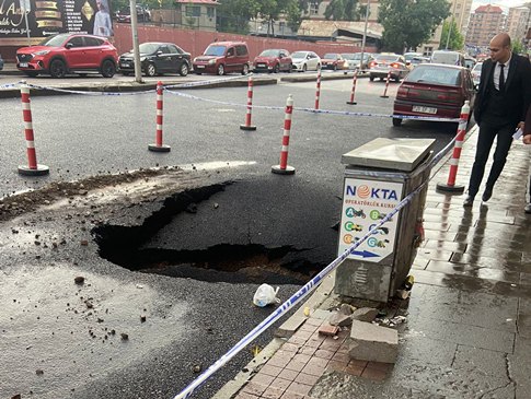 Erzurum’da öğlenden sonra etkisini artıran yağışlar, ulaşımda aksamalara neden oldu. Aşırı yağmur nedeni ile Yakutiye ilçesindeki Çaykara Caddesinde asfalt yol çöktü. Esnafın ihbarı üzerine olay yerine giden Büyükşehir Belediyesine bağlı ekipler, göçüğün etrafını güvenlik şeridi ile kapattı.