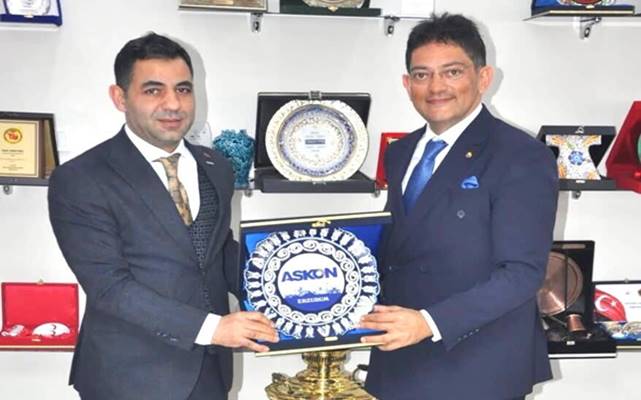Anadolu Aslanları İşadamları Derneği (ASKON) Erzurum Şube Başkanı Yavuz Selim Turan ise şehir ekonomisinin büyümesi ve sürdürülebilir hale gelmesi için kamu, özel sektör ve sivil toplum kuruluşları arasında güçlü bir iş birliği yapılması gerektiğini belirterek,''ASKON Erzurum Şubesi olarak Erzurum'un geleceğini birlikte inşa etmek için üretmek, paylaşmak ve iş birliği yapmak adına mücadelemizi sürdüreceğiz." ifadelerini kullandı. Başkan Turan, ziyaret anısına ETSO Başkanı Özakalın ile ETB Başkanı Oral'a 'ASKON' tabak hediye etti. İHA