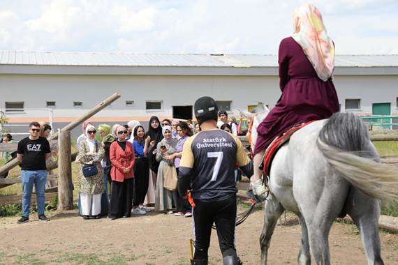 Atatürk Üniversitesi uluslararasılaşma misyonu doğrultusunda misafir ettiği 91 ülkeden 3 bini örgün olmak üzere toplam 11 bini aşkın uluslararası öğrencisi ile dünya üniversitesi olma yolunda emin adımlarla ilerliyor. Bu kapsamda hem öğrencilerle gönül bağını güçlendirmek hem de ailelerinden uzakta geçirdikleri bayramın burukluğunu gidermek adına bayram şenliği düzenlendi. Üniversitenin Manej Alanı ve Atçılık Koordinatörlüğünde gerçekleşen ve UDEF tarafından her ülkeden temsilen katılan 200'e yakın öğrenciye balık ikramı yapılarak at binme keyfi yaşatıldı.