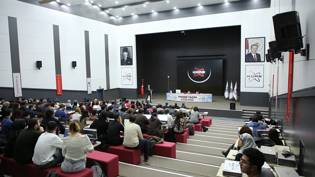 100 öğrenciyle gerçekleştirilen atölye, yoğun ilgi gördü Küre Proje Koordinatörü Muttalip Erdoğan ve ekibi tarafından yürütülen Madde Yazım Atölyesinde, 100 öğrenciye dijital ansiklopedi yazım süreçleri, kaynak güvenilirliği, akademik ifade teknikleri ve telif bilinci konularında eğitim verildi.