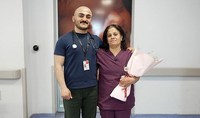 Hastanenin acil servisinde görevli pratisyen Hekim Dr. Buğra Şekerci aynı hastanede doğumhanede ebe olarak çalışan annesi Nefise Şekerci'yi ziyaret ederek çiçek takdim etti. Aynı kurumda görev yapan anne ve oğlun, aynı gün nöbetçi olmaları nedeniyle gerçekleşen buluşma duygusal anlara sahne oldu.