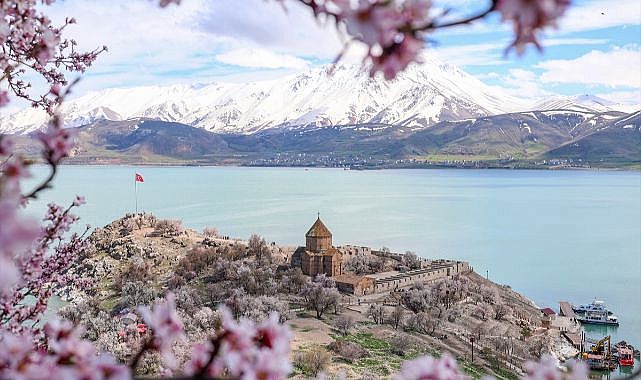 Yılın her döneminde farklı manzarasıyla insanları cezbeden Akdamar Adası, bugünlerde de Van Gölü'nün ve gökyüzünün maviliği ve çiçek açan badem ağaçlarıyla ziyaretçilerini ağırlıyor.