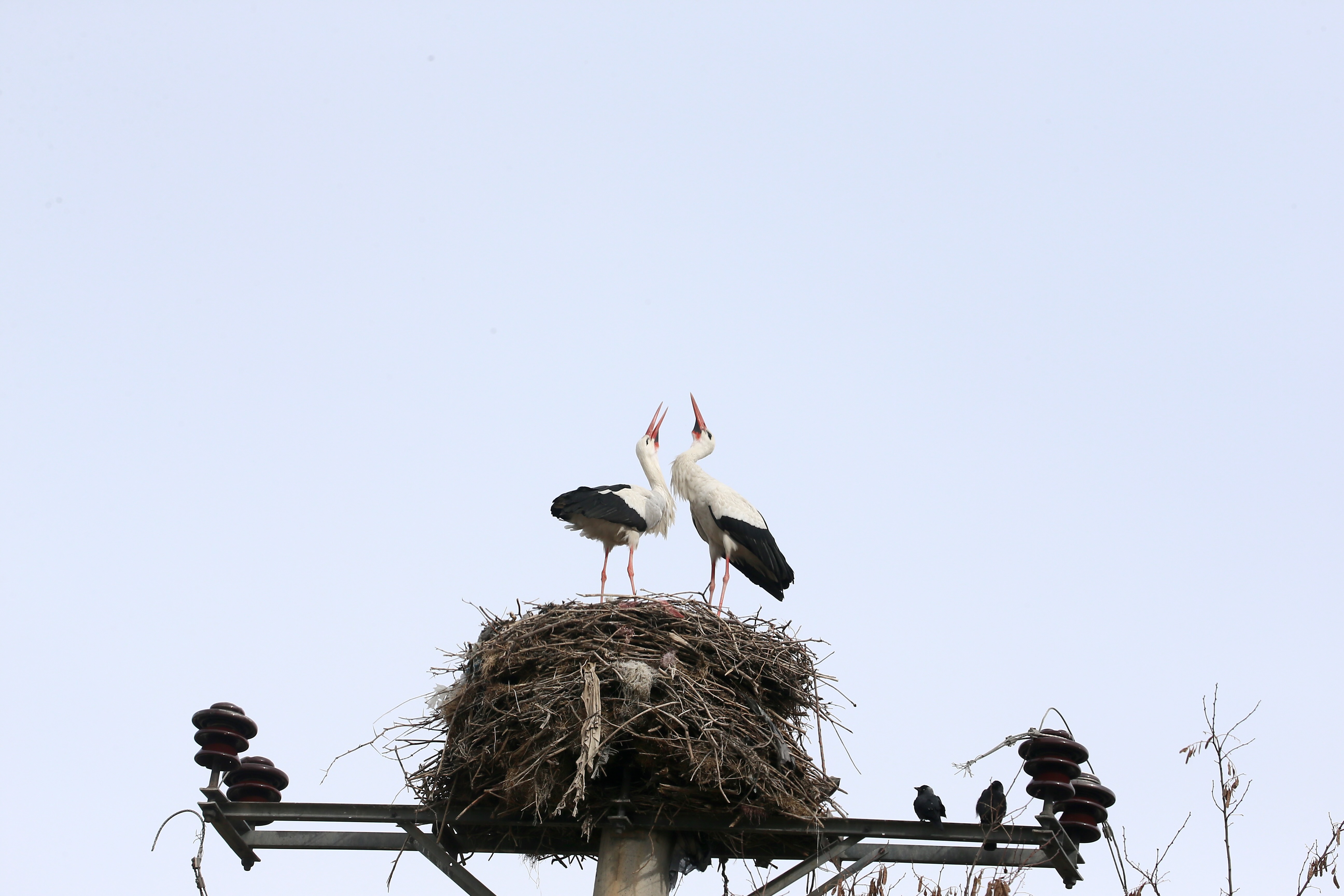 Kışın sıcak bölgelere göç eden leylekler, havanın ısınmasıyla ovadaki köylerde bulunan yuvalarına dönmeye başladı.