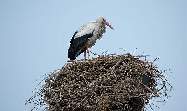 Sonbaharda sıcak bölgelere göç eden leylekler, havaların ısınmasıyla il merkezine bağlı Kümbetli köyündeki yuvalarına bu sene bir ay erken döndü.