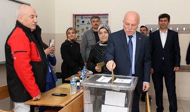 Erzurum Büyükşehir Belediye Başkanı Mehmet Sekmen, eşi Gülay Sekmen ile birlikte Kültür Kurumu Ortaokulu’ndaki 1179 numaralı sandıkta oyunu kullandı.