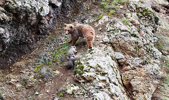 Tunceli’de kaydedilen görüntüler, yaban hayatının en özel anlarından birini gözler önüne serdi. Dağlık alanda görüntülenen bir ayılar ve yavruları, izleyenlere adeta belgesel sahnelerini aratmayan anlar yaşattı. Görüntülerde bir anne ayının yavrularını emzirdiği anlar net bir şekilde kaydedildi. Bir süre sonra hareketlenen yavruların kayalık alana doğru ilerlediği, annenin ise onları dikkatle yönlendirdiği görüldü. Zorlu arazi şartlarında ilerlemekte zorlanan yavrularına yardım eden anne ayı, zaman zaman geri dönerek onların güvenli şekilde tırmanmasını sağladı.