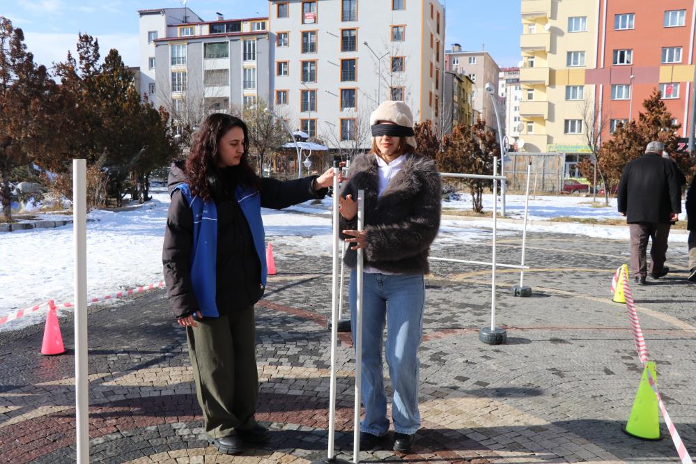 Erzurum'un Oltu ilçesinde vatandaşlar görme engelli bireylerin günlük hayatta karşılaştıkları zorlukları deneyimlediler.