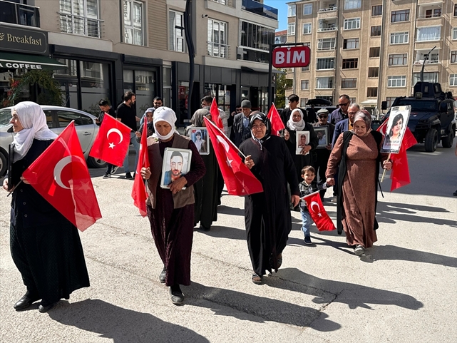 Menekşe Sokak'ta bir araya gelen aileler, Türk bayrakları ve evlatlarının fotoğraflarını taşıyarak DEM Parti İl Başkanlığı önüne kadar yürüdü.