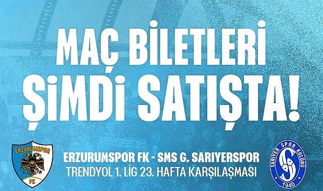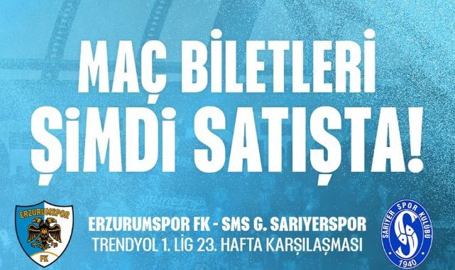 Erzurumspor FK ve SMS GRUP Sarıyer Trendyol 1. Lig’in 23. haftasında 31 Ocak Pazar günü saat 13.30’da Kazım Karabekir Stadyumu’nda oynanacak olan maçın biletleri Passo Lig ve bayilerden satışa çıktı.