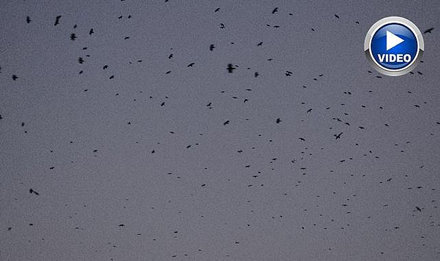 Bitlis'in Tatvan ilçesi semalarında uçan binlerce karga ilginç manzara sundu.