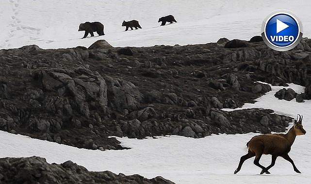 Erzincan ile Tunceli arasında yer alan 3 bin 300 rakımlı Munzur Dağı’nda, boz ayı ve yavrularından kaçan koruma altındaki çengel boynuzlu dağ keçileri görüntülendi.