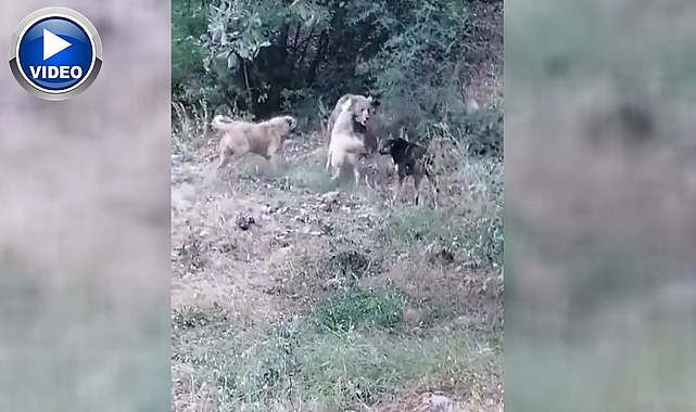 Erzincan’ın merkez ilçesine bağlı Tatlısu köyünün yakınlarına kadar inen boz ayıya çoban köpekleri geçit vermedi. O anlar anbean kameraya yansıdı.
