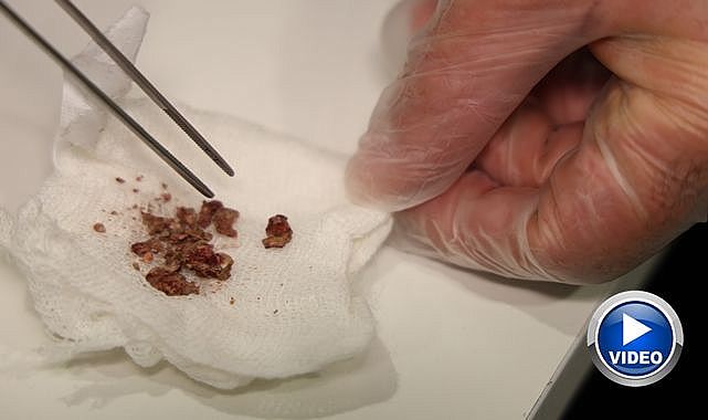 Hastanın burunda şekil bozukluğu şikayetiyle kendilerine başvurduğunu ifade eden Op. Dr. Demirbağ, " Gerekli tetkikleri yaptıktan sonra ameliyatımıza aldık. Ameliyat sırasında rutin işlemlerimizi gerçekleştirirken burun içinde normalde karşılaşmadığımız taşlarla karşılaştık. Biz buna tıpta rinolit adını veriyoruz. Rinolitler, genellikle çocukluk yaş grubunda, çocukların burun içine koyduğu yabancı cisimler nedeniyle oluşur. Bunlar boncuk, kağıt, peçete parçaları gibi cisimler olabilir. Uzun yıllar boyunca bu yabancı cisimlerin etrafında biriken kalsiyum ve magnezyum mineralleri sonucunda taşlaşma meydana gelir. Genellikle ufalanabilir yapıda olsalar da uzun sure fark edilmediklerinde büyüyerek burun tıkanıklığına, zamanla burun içi kanamalarına ve tek taraflı kötü kokulu burun akıntılarına yol açabilirler. Nadiren de bulundukları bölgeye göre hiçbir belirti vermeyebilirler. Hastamız da bu nedenle daha önce bize başvurmamış, asil amacı estetik ameliyattı. Ameliyat sırasında taşı fark ettikten sonra endovizyon sistemini kurarak rinolitlerin tamamını çıkardık. Sonrasında herhangi bir kanama ya da ek bir problemle karşılaşmadık" dedi.