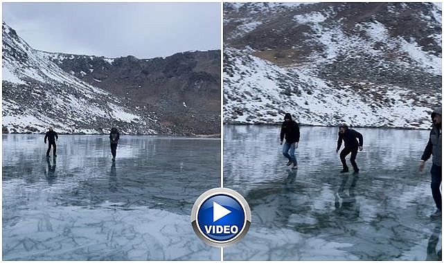 Hava sıcaklığının mevsim normallerinin altında seyretmesi nedeniyle göl yüzeyinde yaklaşık 35-40 santimetre kalınlığında buz tabakası oluştuğu belirtildi. Gençlerin buz üzerindeki renkli anları cep telefonu kamerasıyla kaydedildi.