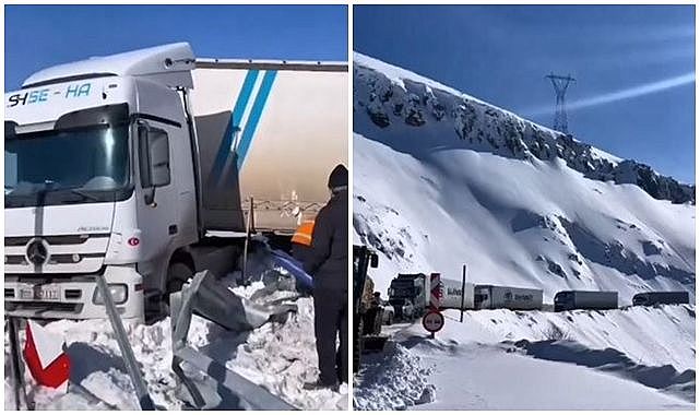 Edinilen bilgilere göre, dün akşam saatlerinde buzlanma nedeniyle kontrolden çıkan bir tır yoldan çıkarak yol kenarındaki bariyerlere çarparak durabildi. Uçurum kenarında şans eseri duran tır nedeniyle karayolu bir süre araç trafiğine kapandı. Kazanın ardından bölgede uzun araç kuyrukları oluşurken, olay yerine ekipler sevk edildi. Tır yoldan kaldırılarak araç trafiği yeniden ulaşıma açıldı.