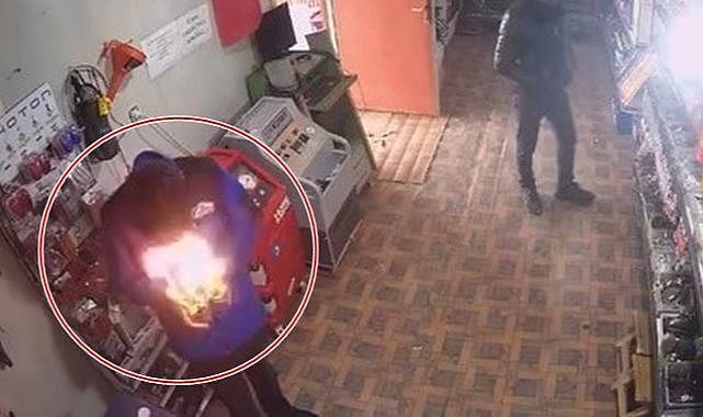 Olay, bir oto elektrik dükkanında meydana geldi. Edinilen bilgiye göre, dükkanda çalışan bir işçi, kabloyu eritmek için çakmağı çakınca o sırada elinde bulunan yapıştırıcı sprey bir anda alev aldı. Yüzü kısa süreliğine alevler arasında kalan çalışan, sprey kutusunu yere attı. Kısa bir şokun ardından kendine gelen çalışan, yerde yanan sprey kutusunu alarak dışarı attı.