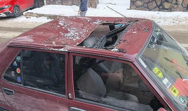 Ortakapı Mahallesi İbrahim Gökçe Sokak'ta E.O.U. (22), 06 VAY 91 plakalı aracını park ettiği sırada binanın çatısından kopan buz sarkıtı otomobilinin tavanına düştü.