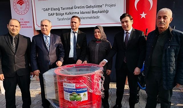 DAP Bölge Kalkınma İdaresi Başkanlığının desteğiyle Tarım ve Orman İl Müdürlüğü tarafından yürütülen DAP Elazığ Tarımsal Üretim Geliştirme Projesi sürüyor. Proje kapsamında Keban ilçesinde düzenlenen törenle hak sahibi üreticilere 110 çapa makinesi, 60 badem silkeleme ve 60 adette ceviz soyma makinesi teslim edildi.