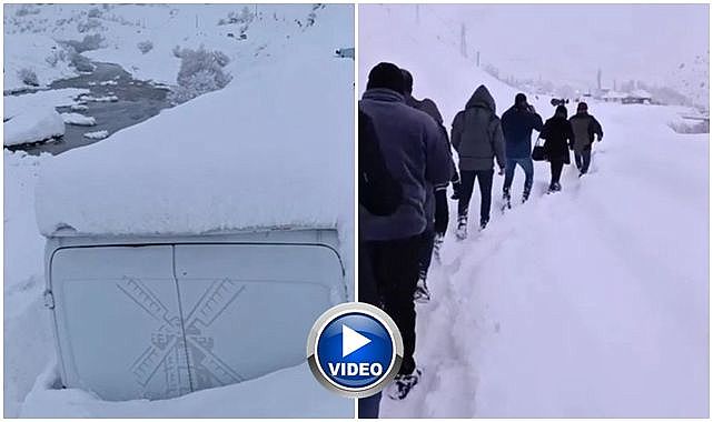 Çığın düştüğü yolda 100 kişi mahsur kaldı!