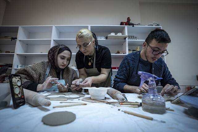 Erzurum Büyükşehir Belediyesi tarafından açılan çini kursuna katılan çoğunluğu kadın kursiyerler, seramikten hazırladıkları eserlerle hem sanat öğreniyor hem de geleceğe yönelik iş planları yapıyor.