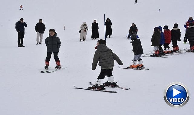 Bitlis’te yarıyıl tatilini fırsata çeviren çocuklar, kayak merkezinde hem eğleniyor hem de kayak eğitimi alıyor.
