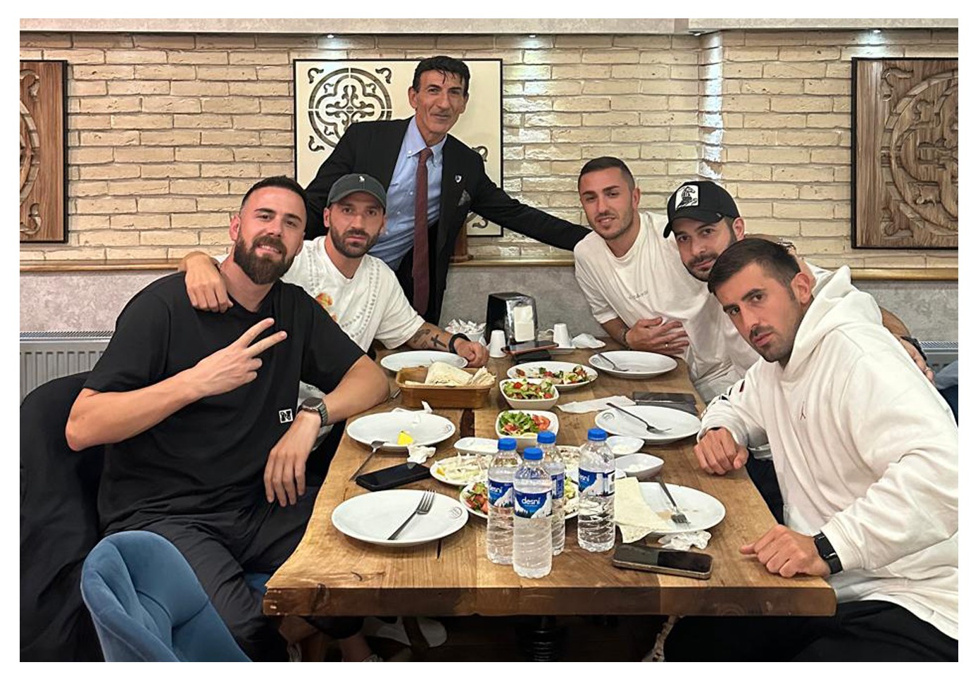 Erzurumspor FK’nın başarılı solbeki Guram Giorbelidze, Gürcistan’dan gelen arkadaşlarına cağ kebap ikramında bulundu. Yeni baba olan Gürcü oyuncu, adres olarak da aynı zamanda Erzurumspor FK’nın yönetiminde yeralan Cabbar Erdoğan’ın mekanını seçti. Futbol ağırlıklı sohbetin de yaşandığı cağlı yemek sonrası arkadaşları Guram’a ikramından dolayı teşekkür ederken, Erdoğan da ‘’Bu benim ikramım’’ diyerek oyuncudan hesap almadı, jeste karşılık jest yaptı.