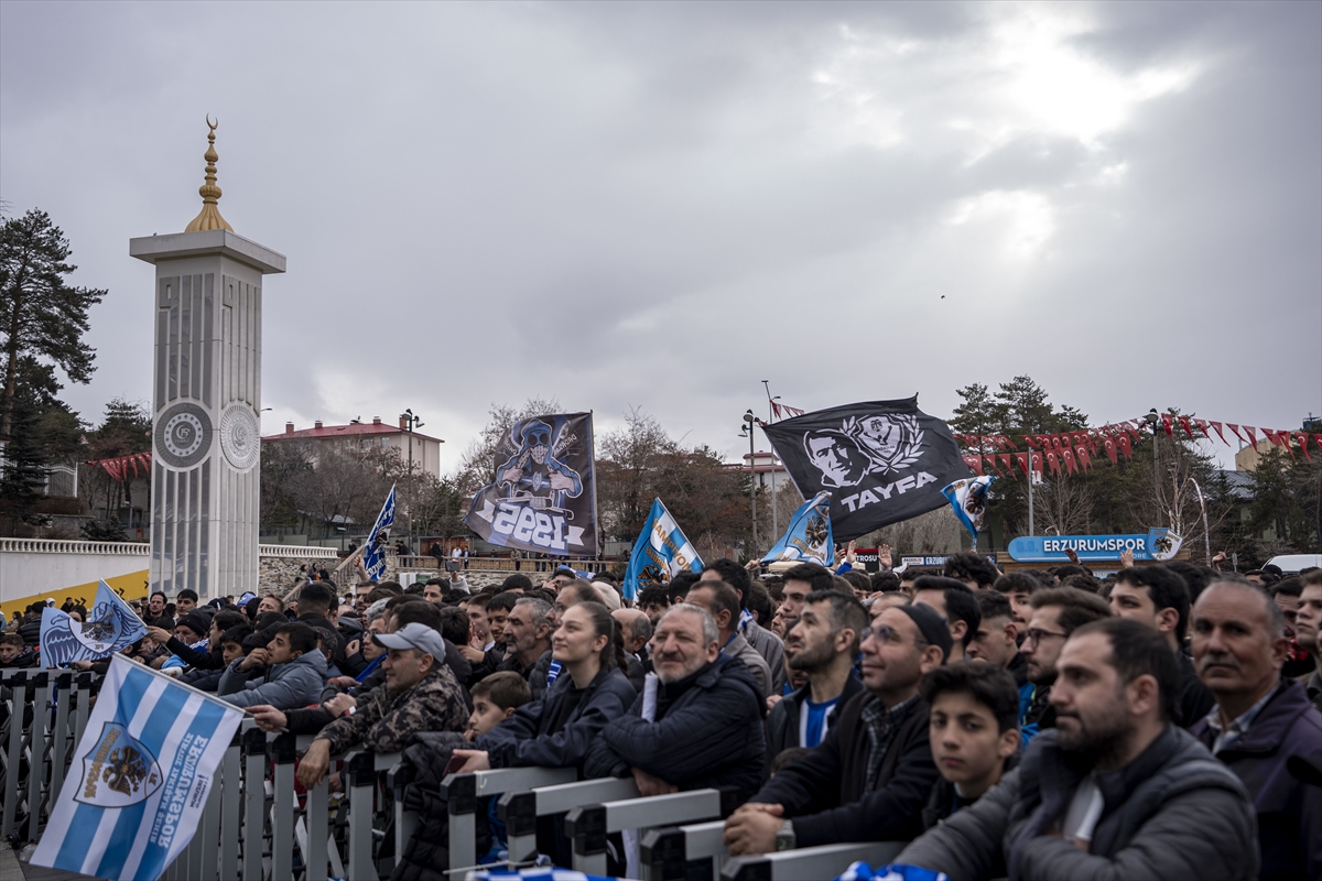 İlk yarının Erzurumspor FK’nın 1-0 üstünlüğü ile sonuçlandığı karşılaşmada taraftarlar ellerinde bayraklar ile mavi meyazlıların şampiyonluğunu ilan etmesini sabırsızlıkla bekliyorlar.