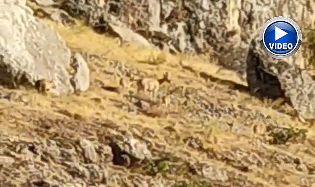 Dağ keçileri yiyecek ararken görüntülendi