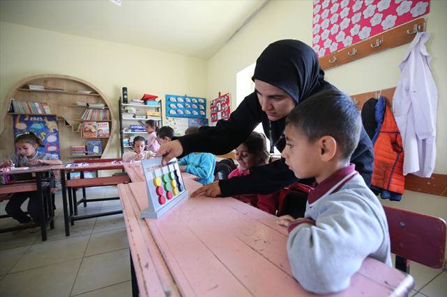 "Sınıfımızı çocuklarla birlikte rengarenk panolarla donattık. Panoda yapılan her etkinlik onların eseri. Her bir renk çocukların eğlendiğinin göstergesi. Çocuklar duvarda etkinliklerini görünce çok mutlu oluyorlar. Köyümüzün yolları biraz eğimli olduğu için kışın araçlar çıkmıyor. Servis bizi yolda indiriyor. Okula kadar yürüyoruz. Dört sınıfı bir arada okutuyorum. Hem müdürlük işleriyle ilgileniyorum, hem öğrencileri geleceğe hazırlıyorum."