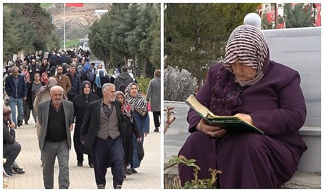 Adıyaman'da Ramazan ayının son gününde vatandaşlar, mezarlık ziyaretinde bulunuyor. 6 Şubat 2023 depremlerinde hayatını kaybedenlerin yakınları mezarlığı ziyaret etti. Ellerinde Kur'an-ı Kerim ile dualar eden depremzedeler, gözyaşlarını tutamadı. Mezar taşlarına sarılan depremzedeler gözyaşı döktü. Depremde hayatını kaybeden kişilerin mezarlarına bırakılan kişisel eşyalarının yanı sıra mezar taşlarındaki yazılar da görenleri duygulandırdı.