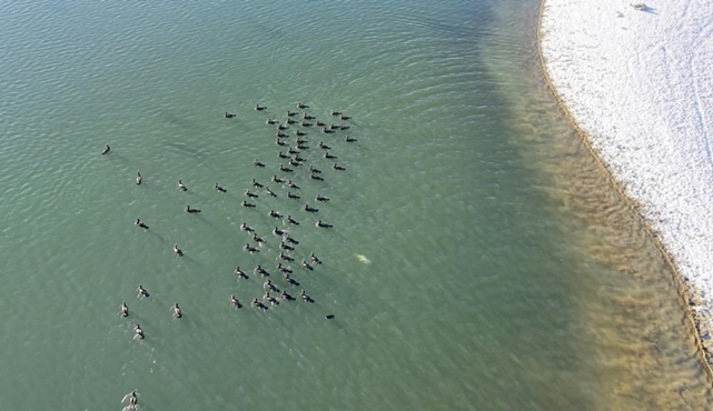 Elazığ'da son günlerde etkisini artıran soğuk hava ve kar yağışı, kent genelinde kış manzaralarını oluştururken, yaban hayatında da dikkat çekici anlara sahne oldu. Cip Baraj Gölü üzerinde dron ile yapılan çekimler sırasında, kara bataklar görüntülendi. Baraj gölü üzerinde bir süre su yüzeyinde koşar adımlarla ilerleyen kara bataklar, daha sonra kanat çırparak havalandı.